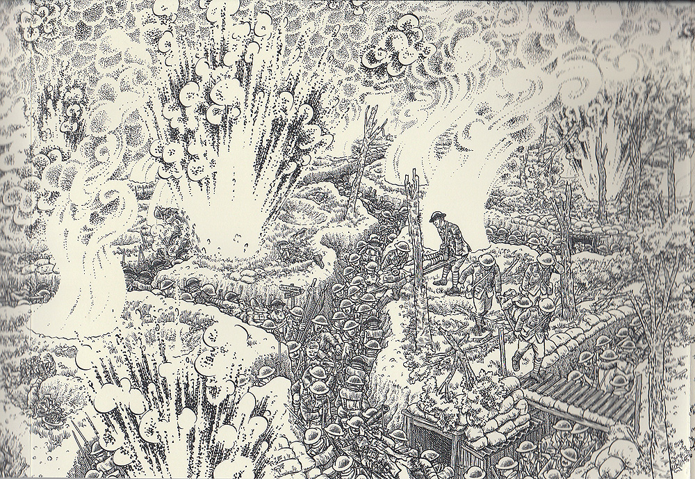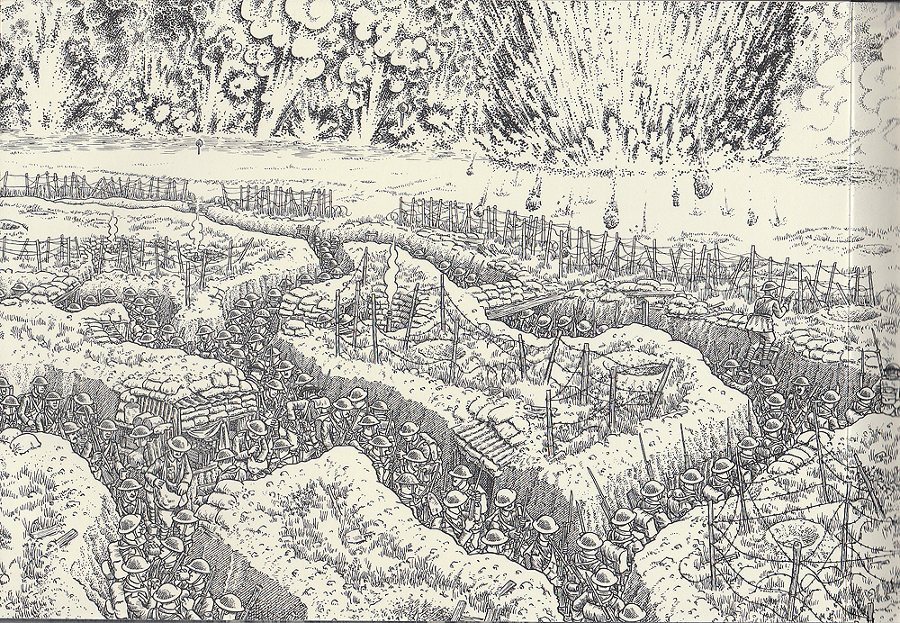 It’s a harrowing tale, brought starkly to life by the black-and-white ligne claire (clear line) images. The Battle of the Somme was one of the most horrific in the annals of war, with more than 57,000 British soldiers dead or wounded on the first day itself, along with some 8,000 German casualties. By the time the offensive petered out in the November mud, Great Britain had lost 400,000 men Germany 335,000, and France 200,00. All for an advance of 15km on the part of the Allied forces! If there were ever a tale of the futility of war, the Somme is it; and yet, 100 years later, it remains an ever-present threat hanging over so many nations.
