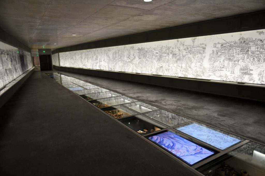 The artwork of ‘The Great War’ is displayed in a 60-metre mural at the entrance gallery to the Thiepval Museum, a memorial to the Battle of the Somme that stands on one of the ridges overlooking the battlefield. Image courtesy the Museum site (https://www.historial.fr/en/news/the-thiepval-museum/)